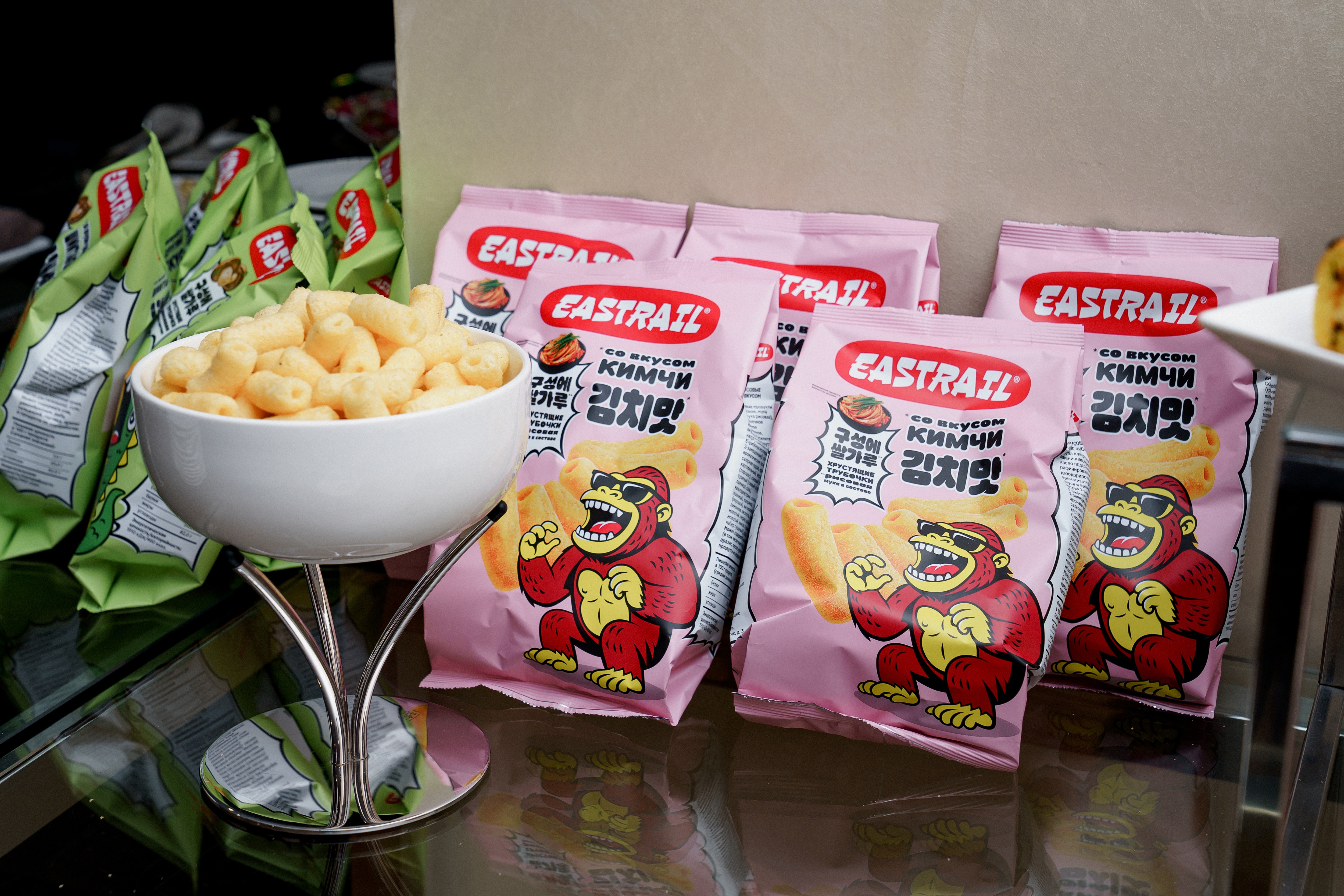 Сейчас везде очень сильный тренд на Азию, и мы не остаемся в стороне. Сделали на нашем производстве в Твери азиатские снеки под маркой Eastrail — пшенично-рисовые трубочки со вкусом кимчи и шиитаке. Была понятная для нас технология, которую мы отработали какое-то время назад, но не знали, куда ее применить, и тут увидели, что, оказывается, это азиатский экструзионный снек и сделали достаточно успешный запуск. У нас в планах совместная коллаборация с одним из производителей из Южной Кореи по разработке азиатской лапши для варки под нашим брендом. Думаю, в ближайшие несколько месяцев она уже появится на полках.